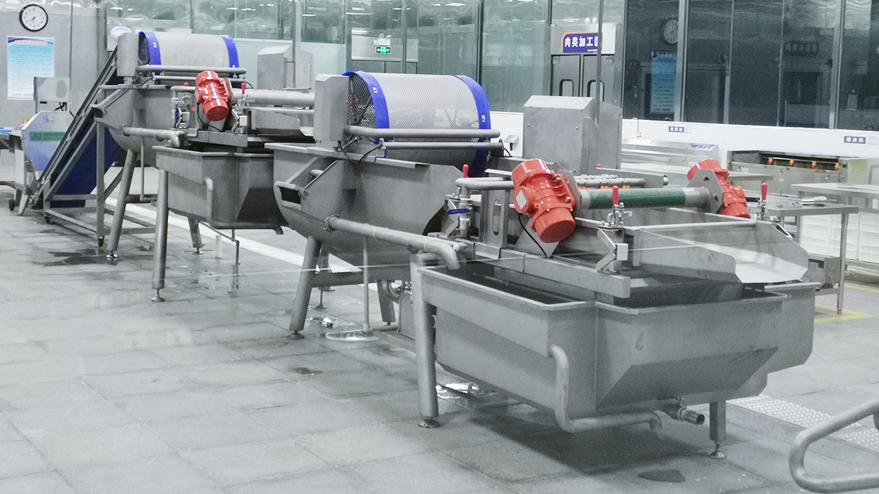 适用于中央厨房使用的预制菜生产线设备,可根据不同菜品选择不同的预制菜生产线设备,包括蔬菜的清洗、切分、二次清洗、沥水风干、脱水、提升、输送等多个产品设备。