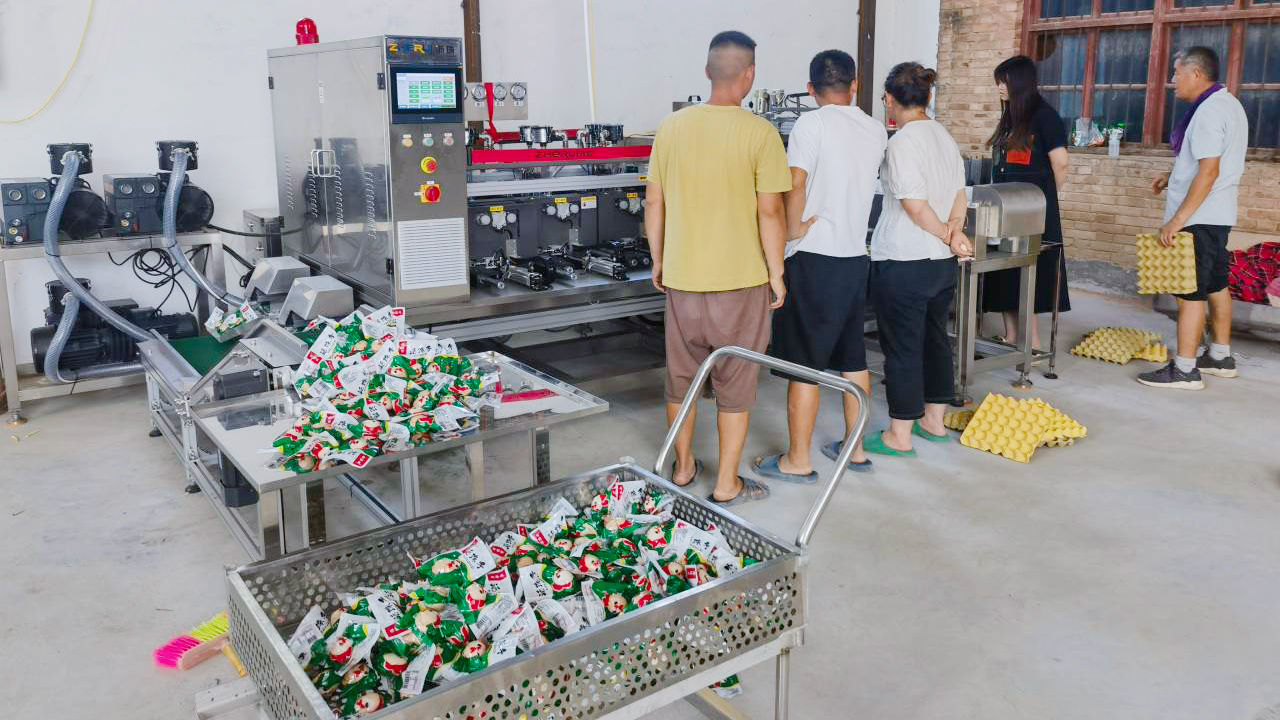 活珠子生产线毛蛋生产线多有个设备组成,主要有:孵化机、真空包装机、高温杀菌锅、清洗风干线等设备,生产线可大可小,根据需求的产量来选择不同的设备,可来电详询。