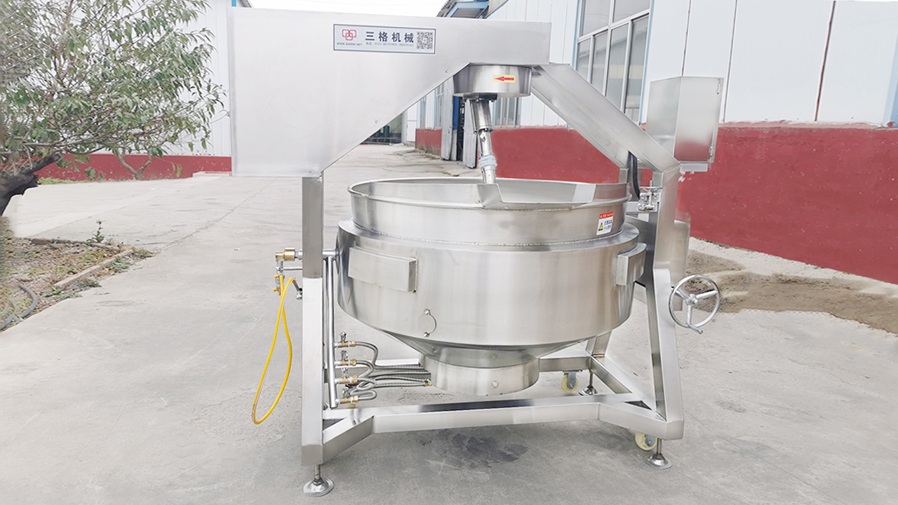行星炒锅采用半球形不锈钢锅体一次冲压而成,可以采用、燃气、蒸汽、电加热等加热形式,搅拌方式采用特殊的倾斜式搅拌,可以使得行星搅拌器和锅底充分接触,可以360度刮底搅拌,具有变频功率,可以让机器运行更平稳,更省电;特殊设计结构,倒料不需要拆装搅拌器,翻锅倒料,节省人力,是非常实用的食品加工设备,半自动行星炒锅需要人工转动棘轮出料。